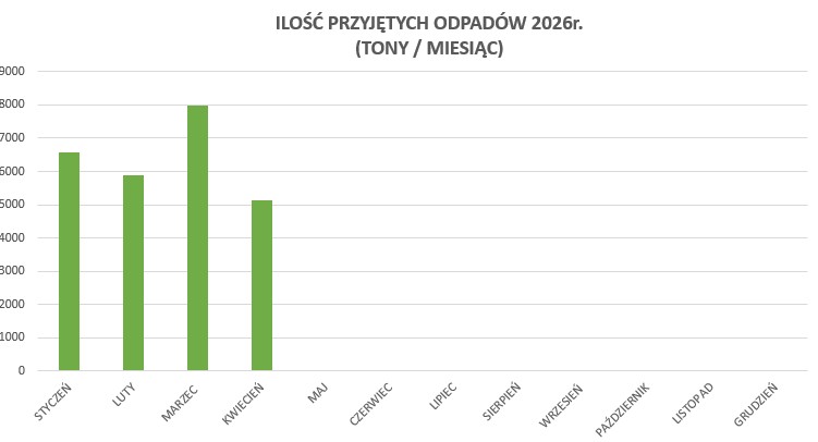 - ujęcie miesięczne (stan od 01.01.2026r. - 18.04.2026r.) : na poziomie 25 541 Mg (ton)