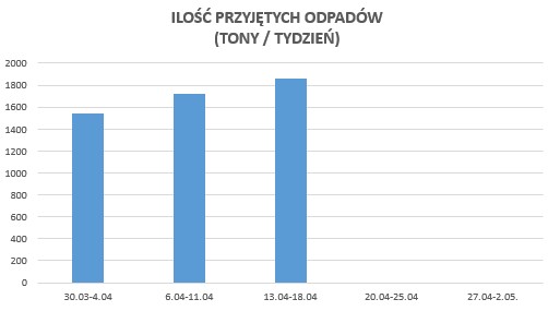 - ujęcie tygodniowe (stan od 13.04.2026r. - 18.04.2026r.): na poziomie 1 857 Mg (ton)