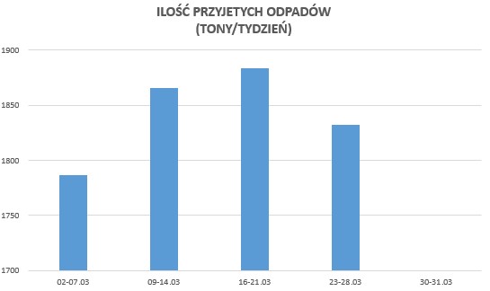 - ujęcie tygodniowe (stan od 23-28.03.2026r.) : na poziomie 1 831 Mg (ton)