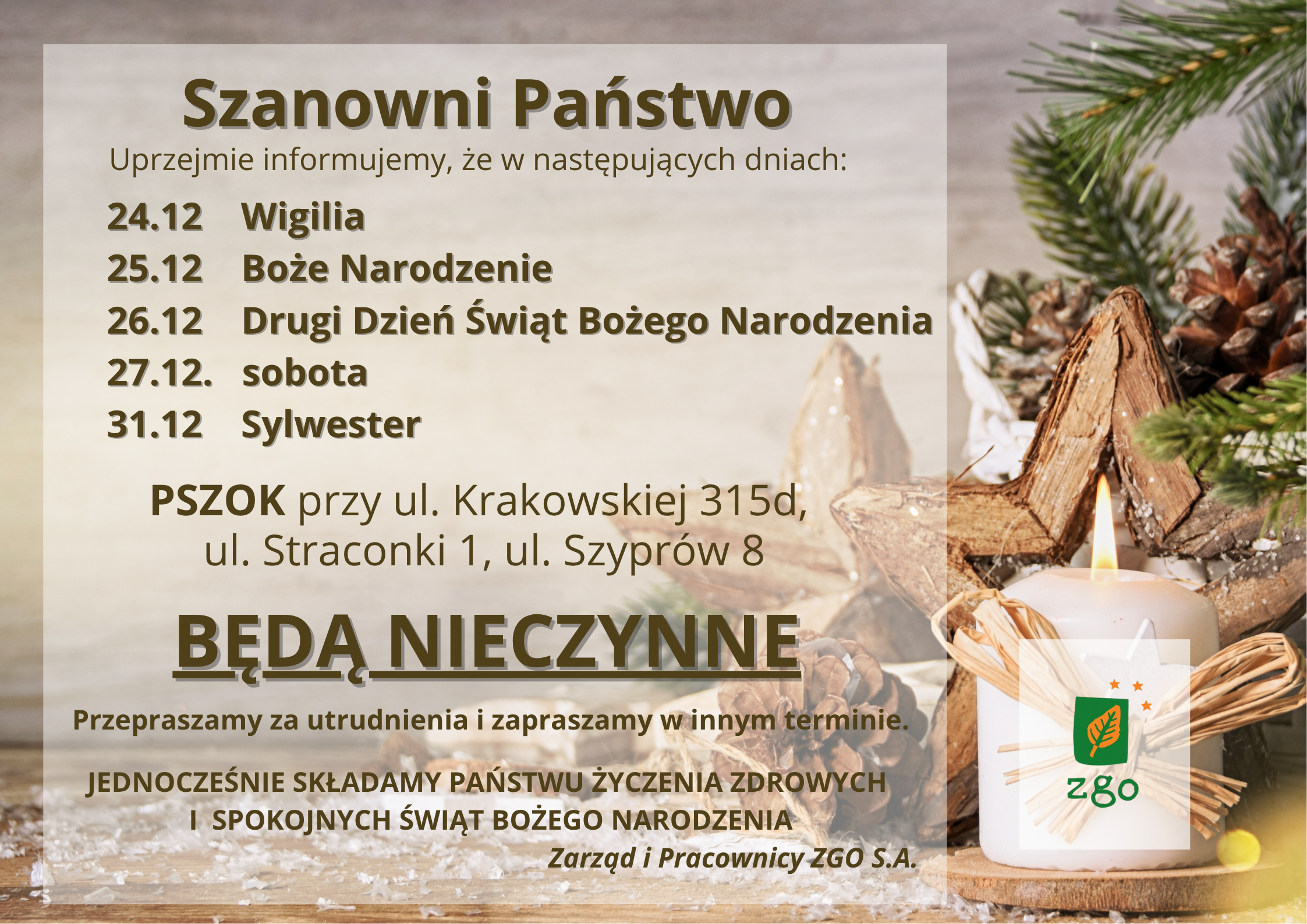 z wyjątkiem 24 grudnia oraz świąt i dni ustawowo wolnych od pracy.